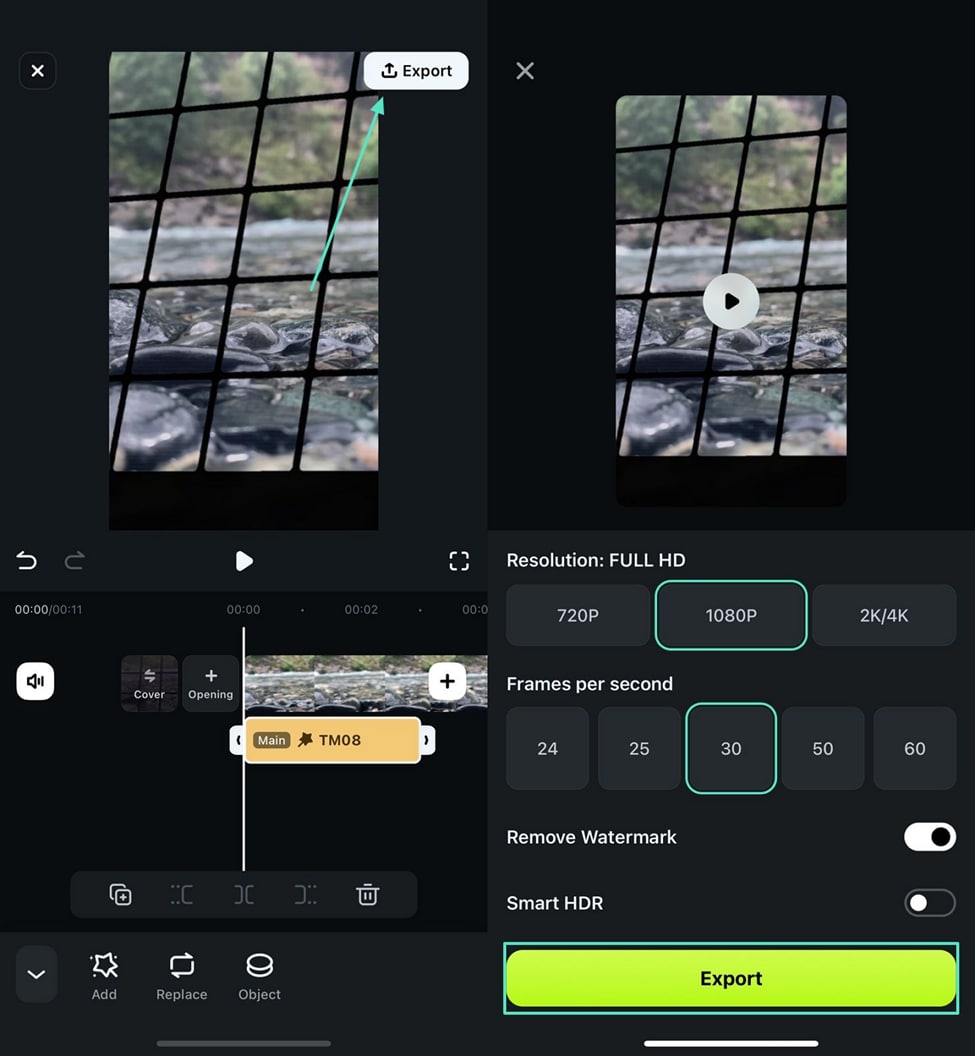 - Step 3. Export the Grid Video From App Once Edited. Once you are done editing the video, locate and press "Export" from the top right and export the video using the next screen.