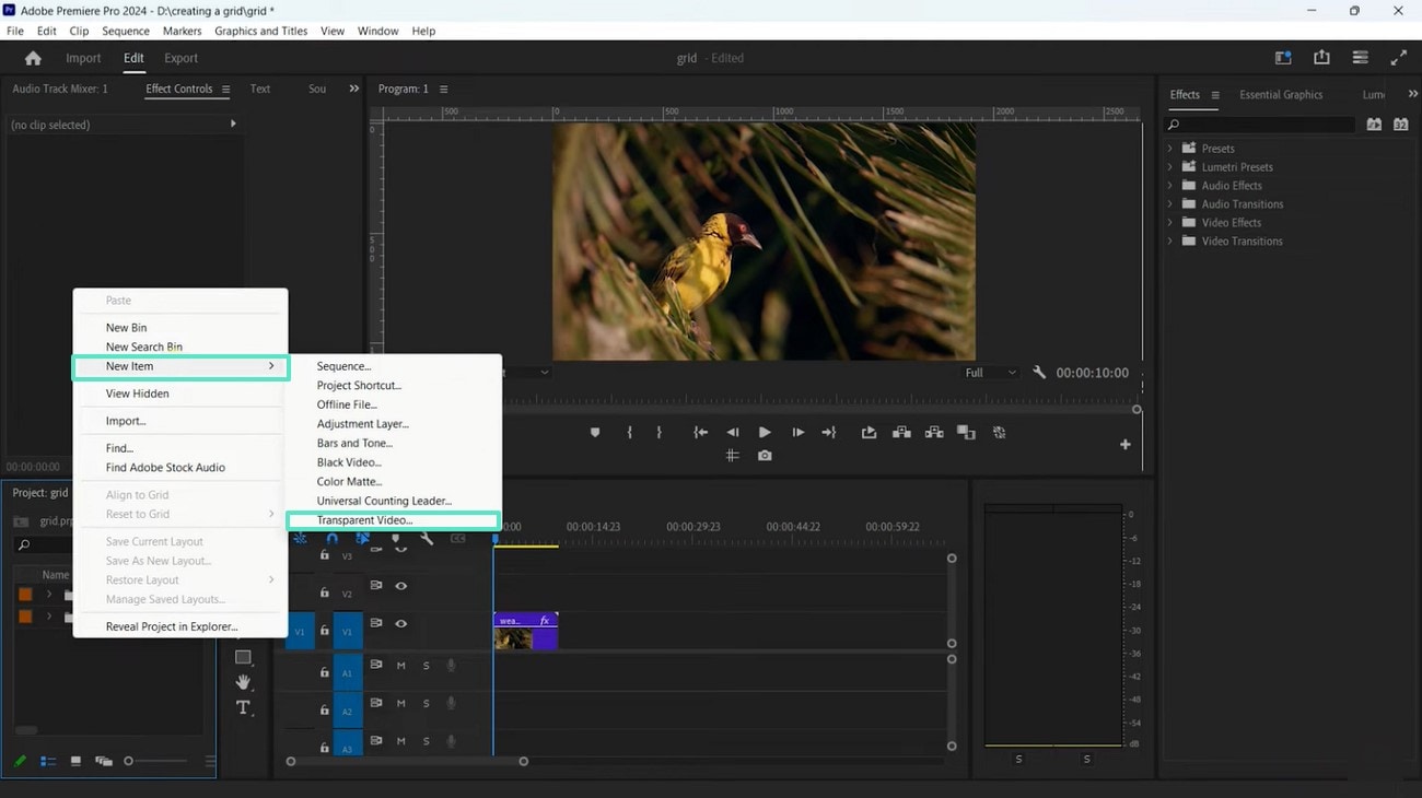 Part 2. Adding Grid Effects to a Video: Adobe Premiere Pro