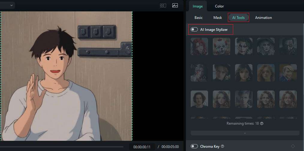 - Turn on the "AI Image Style" Feature: Select the image on the timeline and then choose style.