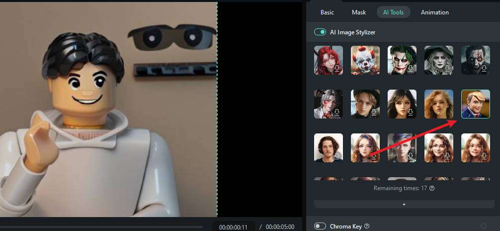 In addition to turning photos into AI starter pack videos, another exciting feature that Filmora offers is its AI Image Style Transfer, which allows users to transform ordinary photos into stylized works of art easily. When it comes to being an AI action figure generator, this tool is incredibly powerful—it can convert a selfie or portrait into a figure toy.