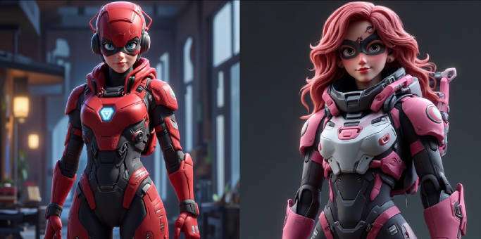 3. "Female superhero in futuristic suit, comic book style, action figure style".
