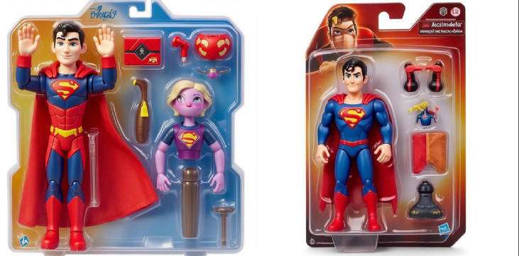 1. "Photo realistic image of an action figure( superhero), packaged vertically in a premium collectible blister pack, seen from the front. The action figure is on the left (hands up, wearing superhero clothes); on the right, three accessories are arranged neatly in separate moulded compartments: (accessory 1), (accessory 2), and (accessory 3)."