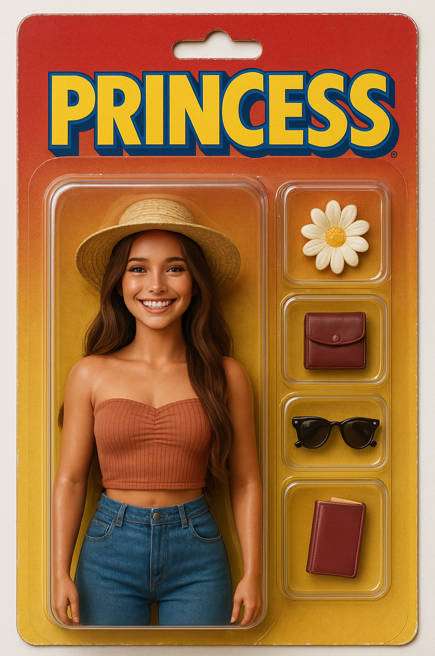 - Add your detailed descriptions to GPT. Example prompts: "Create an action figure of myself based on my selfie, standing inside a plastic blister packaging on a cardboard backing. Include a bold toy logo at the top that says [princess]. The figure is smiling, styled in modern casual fashion, posed heroically. Add accessories like [4] in compartments beside the figure. Make it look like a premium collectible toy from the 90s.