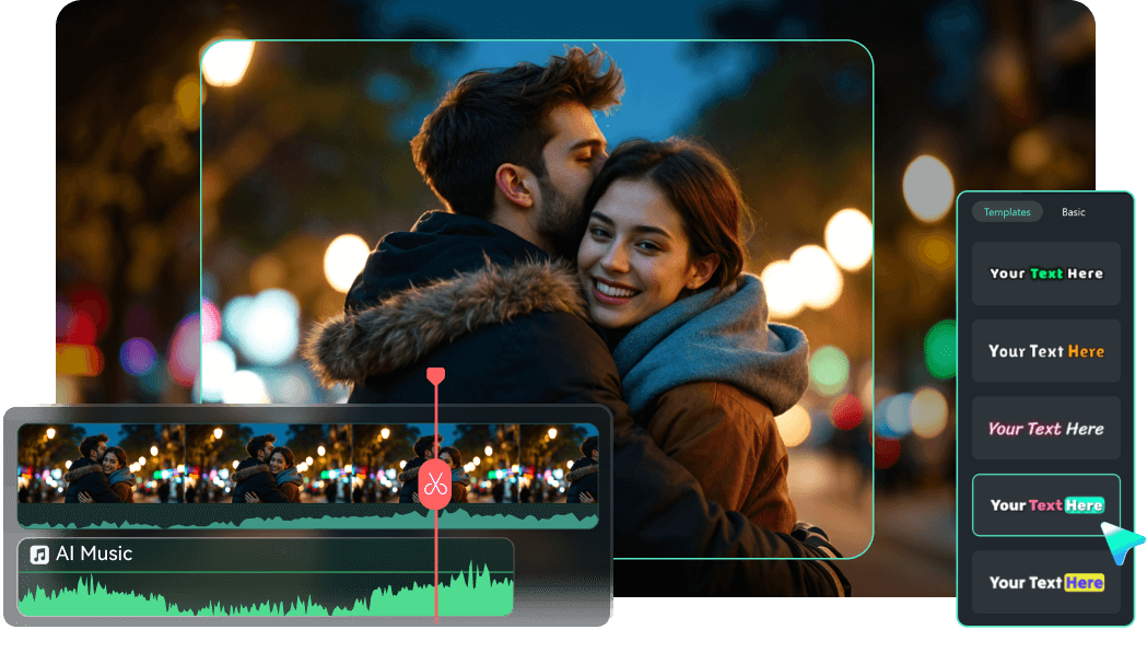 Filmora combines powerful AI features with an easy-to-use interface. You can customize every animation, add filters, transitions, and overlays, then export high-quality videos for social media, presentations, or marketing content.