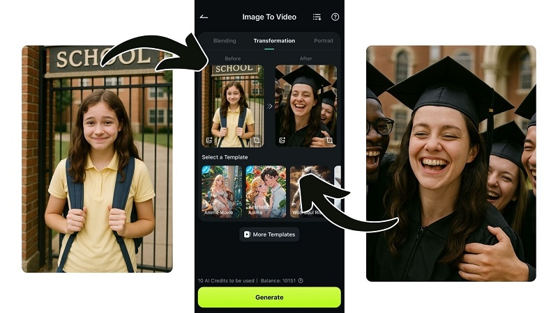 Create viral content with AI image animation templates inspired by the latest social media trends. From AI Mermaid Filter to Ghibli-style effects, animate photos with AI and stand out online.