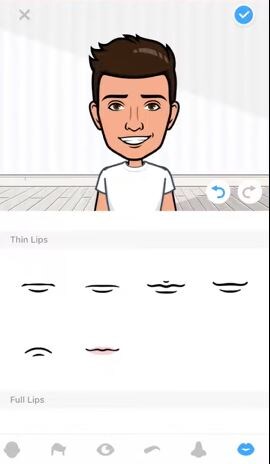 Choose a face shape and hairstyle that matches your face. Pick your eyes (round, downturned, etc), eyebrows, nose, and lips according to your preference. When done, click the Blue check mark at the top of the screen.