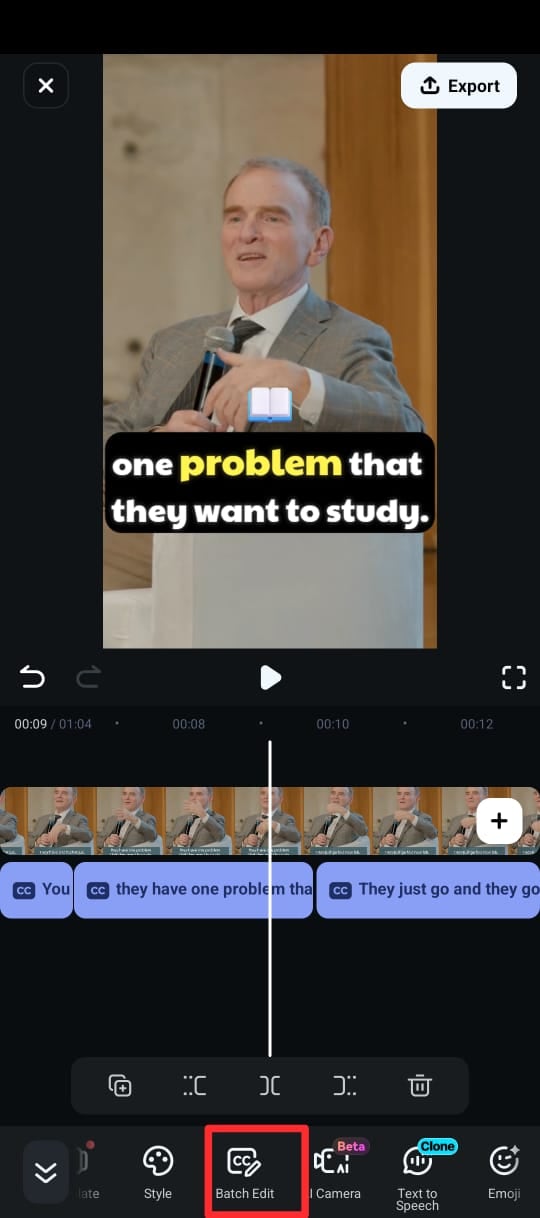 - Step 5. To edit multiple sections quickly, select Batch Edit to modify captions and emojis across short clips. Make your emojis and captions more dynamic by applying animations from the Animation tab.