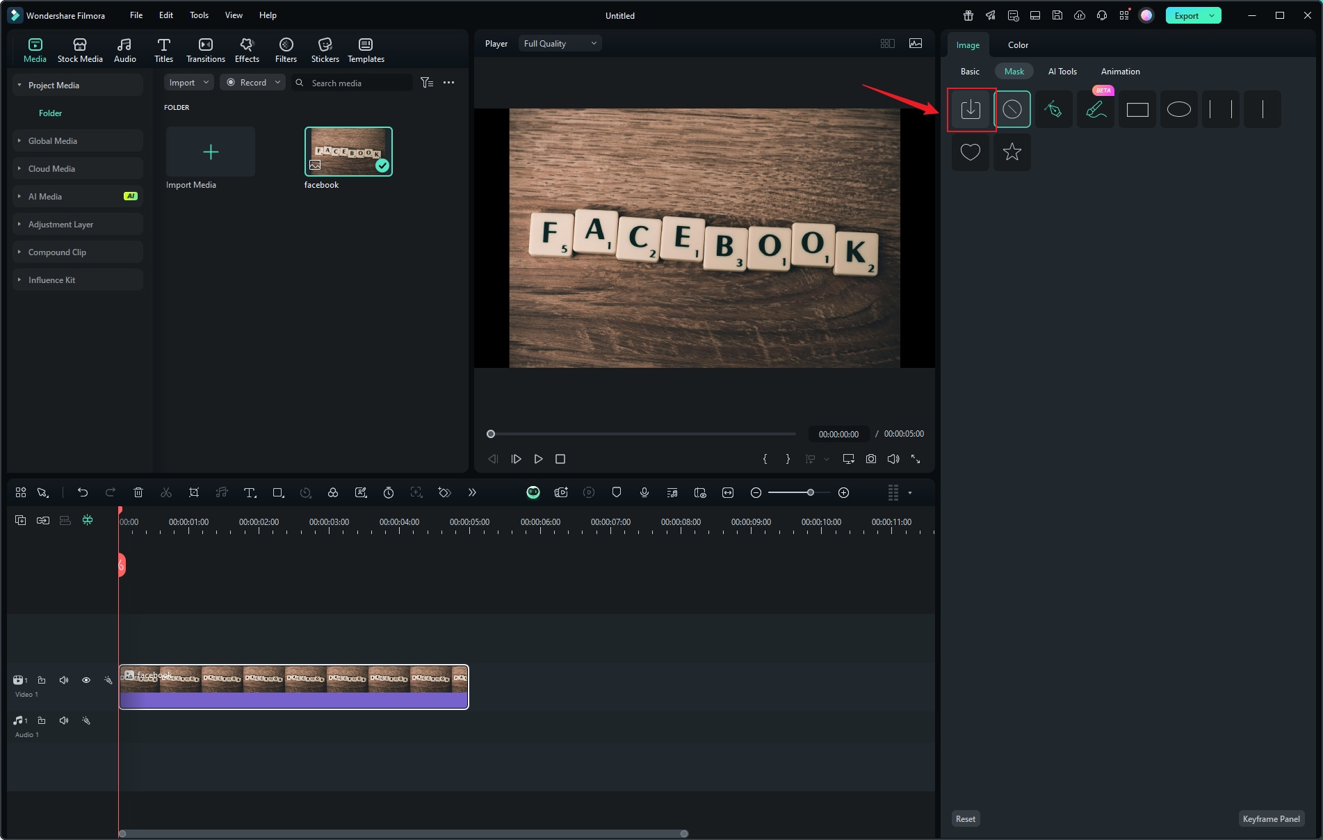 Click the video clip in the timeline to enter the Video panel. Switch from Basic to Mask tab, and you will find some basic mask shapes, such as rectangle, circle, double line, single line, love and star. You can also draw a mask shape as you like.