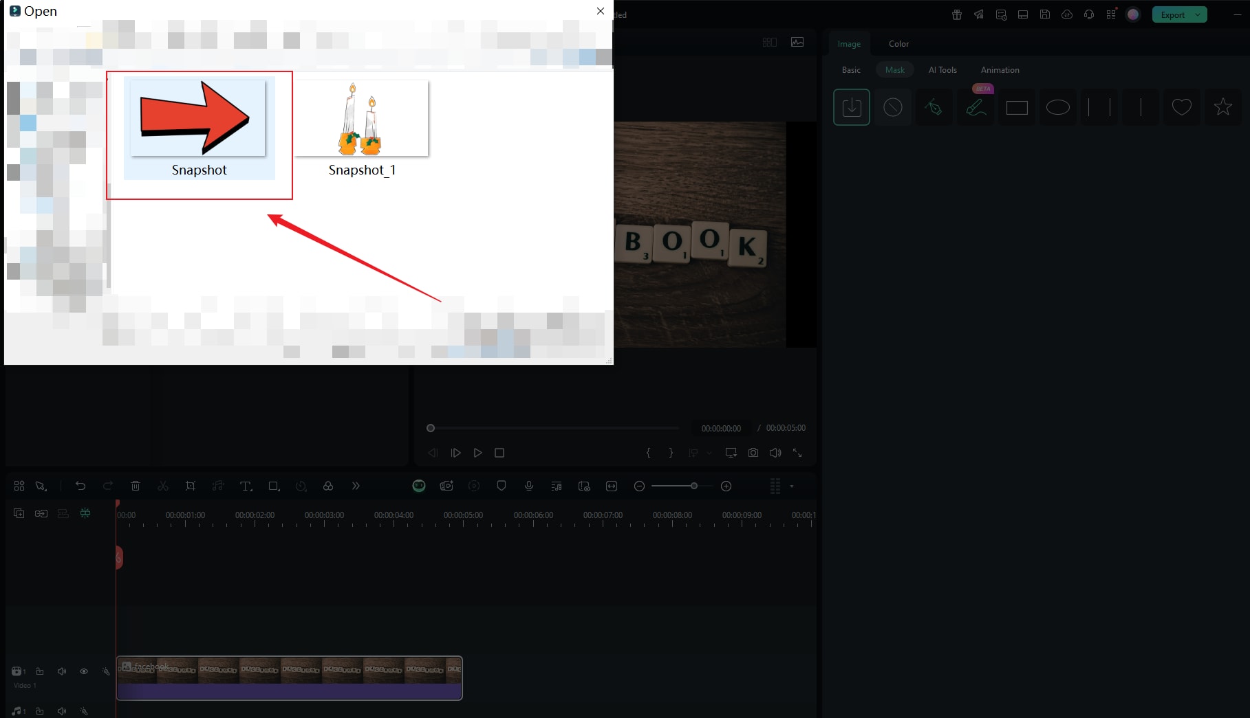 By importing an Alpha-channel PNG image (such as triangles, candle shapes, arrows, rectangles, etc.), the mask will be created based on the image’s outline. You can use various shapes, such as triangles, candle shapes, arrows, rectangles, etc. The system will automatically detect the image and generate an editable mask. You can then adjust the mask’s shape and size to fit your video content perfectly.