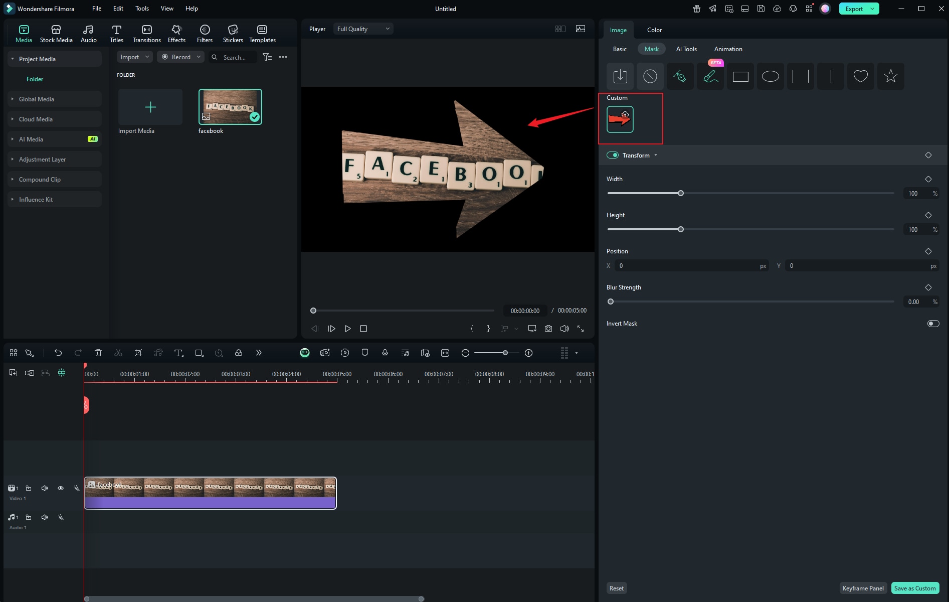 You can apply an existing video mask or load your own video mask by clicking Import. Click one of the shapes from the Masks, you will see only the area covered with the mask shape is visible and everything else gets hidden in the Preview window.