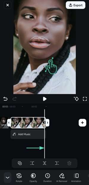 - Tap the photo (the video track) on the timeline and select Animation on the bottom toolbar.