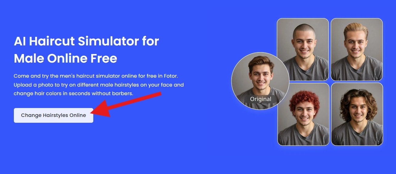 Step 1: Visit Fotor's AI Haircut Simulator landing page and click on Change Hairstyles Online.