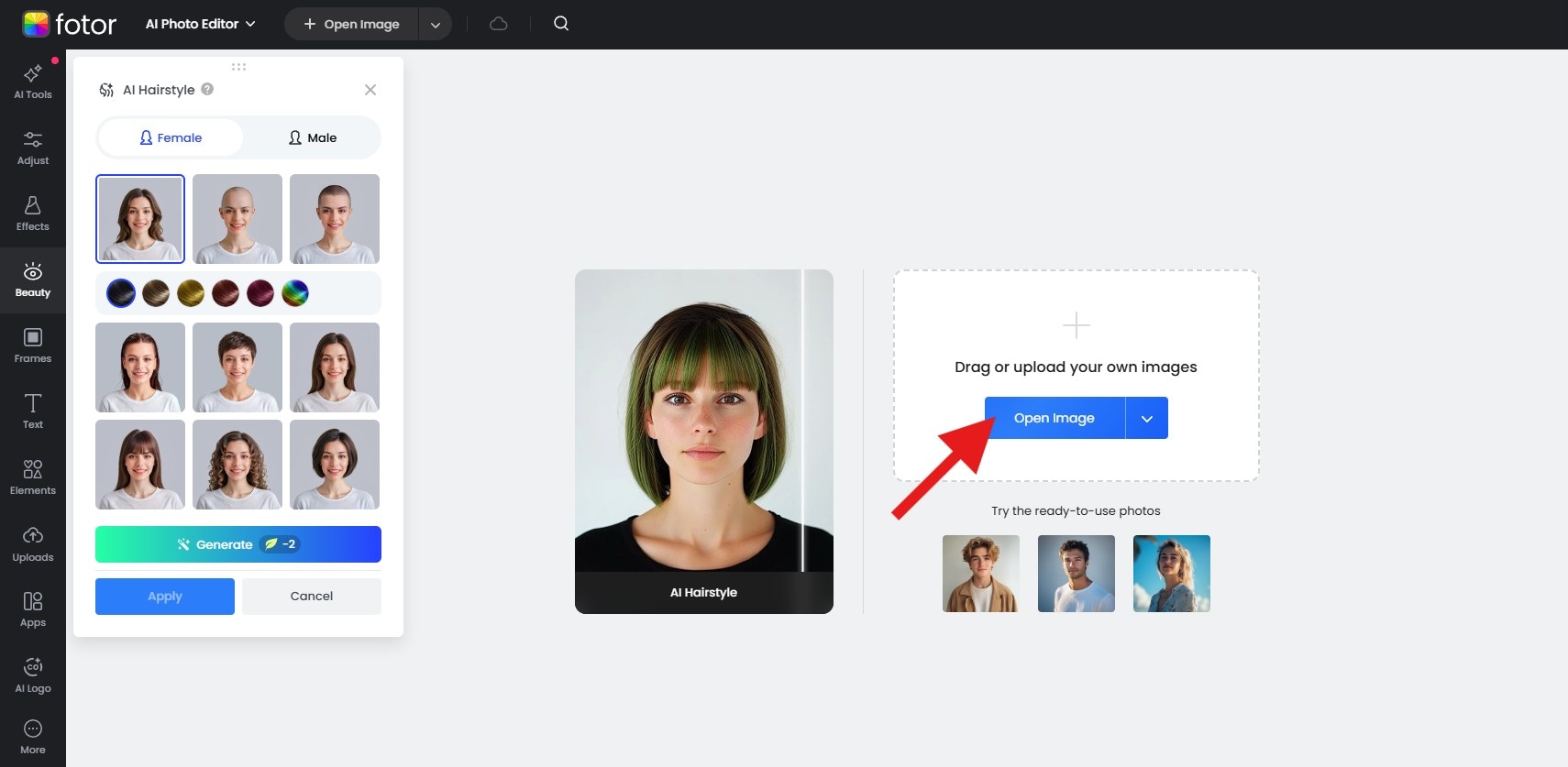 Fotor's virtual hairstyle changer lets you safely experiment with all 10 styles we just featured. Here's how to see yourself with each look in minutes: