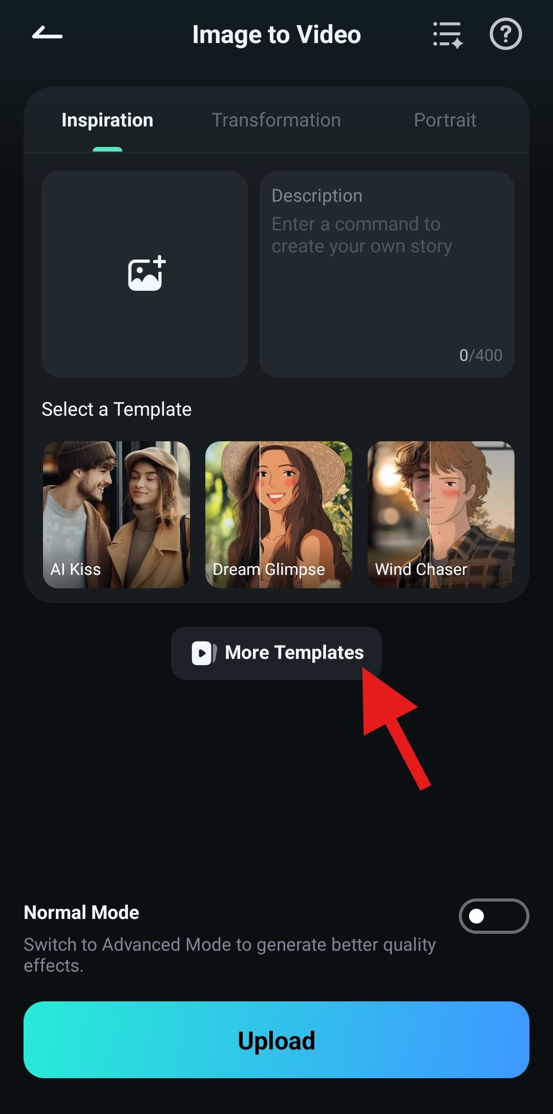 Step 4: Tap on More Templates to access a vast library of image-to-video transformation templates.