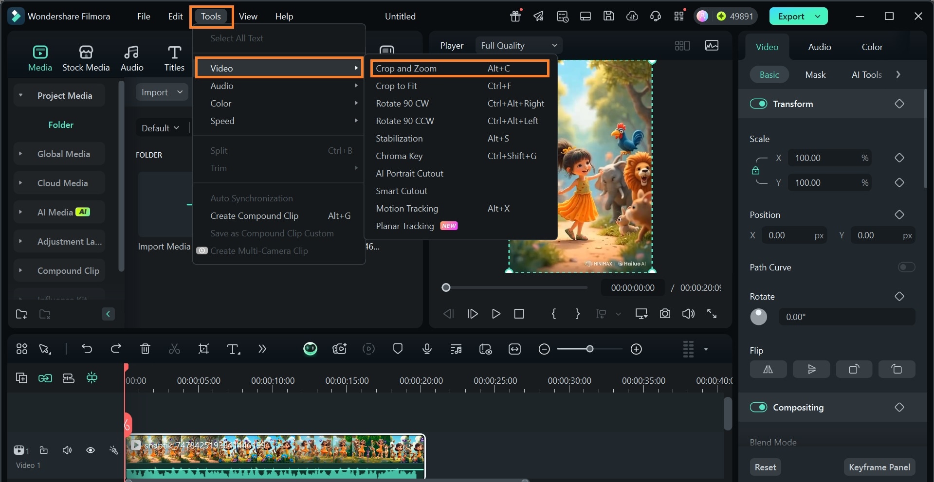 - Go to Tools > Video > Crop and Zoom to change your aspect ratio.