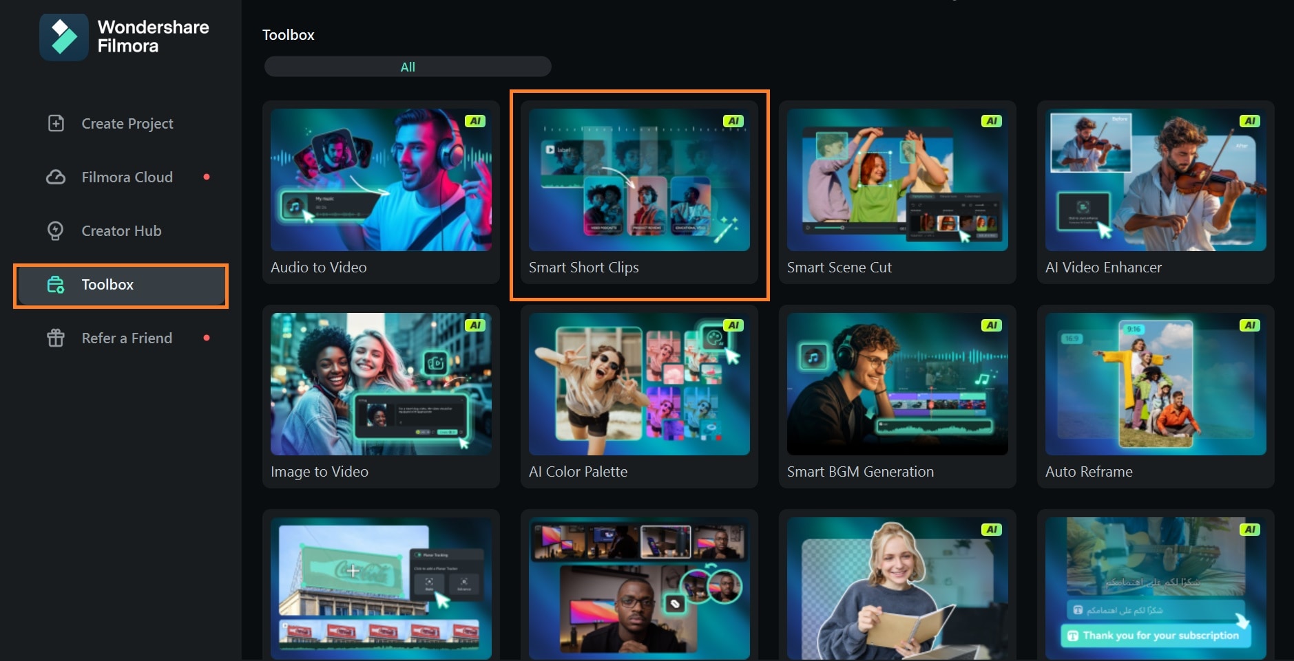 Filmora's Smart Short Clips Tool can help you transform your TikTok videos into engaging content for other social media channels, such as Instagram or YouTube.