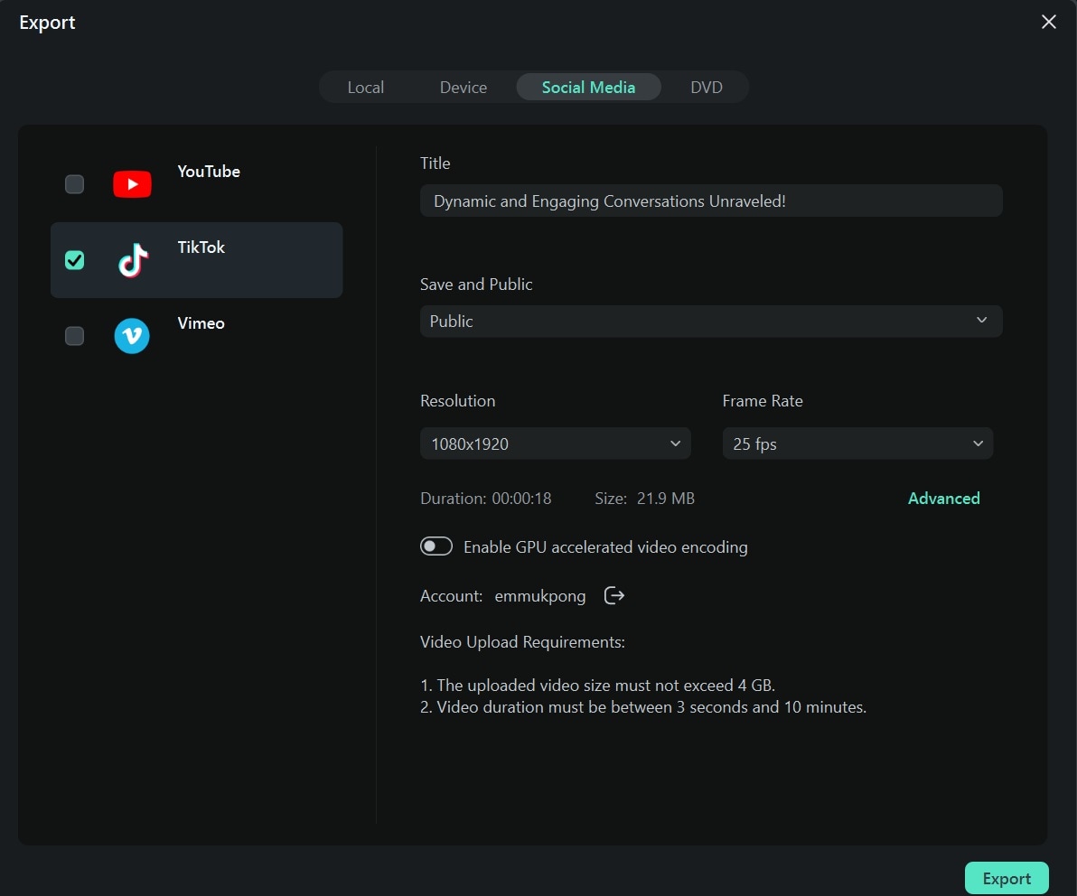 Use Filmora's TikTok Scheduler to automate this and ensure your videos go live at the best times for engagement.
