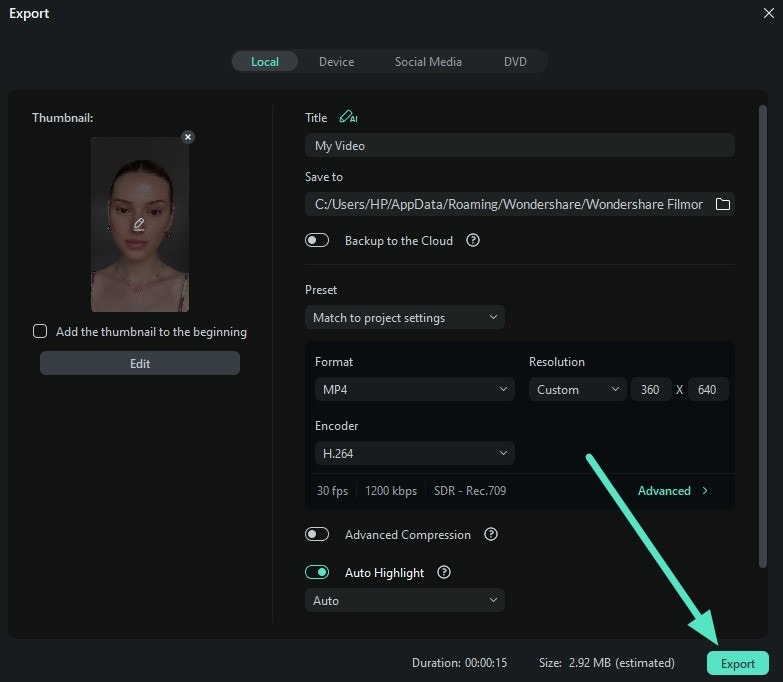 - Step 4. Modify Export Setting to Meet Your Needs. In the last step, edit the export settings, like format and resolution, and finally, hit the "Export" button to save the bleep video effect on your device.