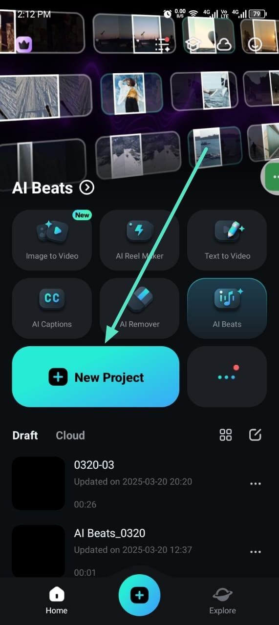 - Step 1. Open the Filmora App To Create a Project. After opening the Filmora App, hit the "New Project" section from the display. Next, initiate the process by importing video from your phone.